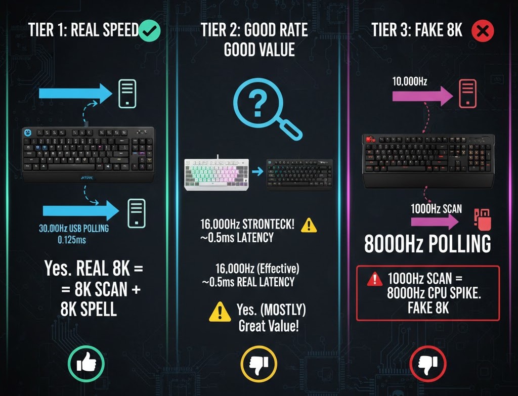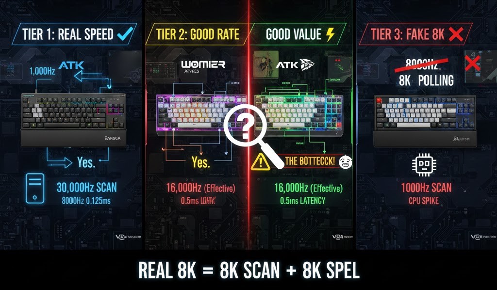 The Verdict: A “Real” 8K keyboard must have a Scan Rate of at least 8,000Hz.